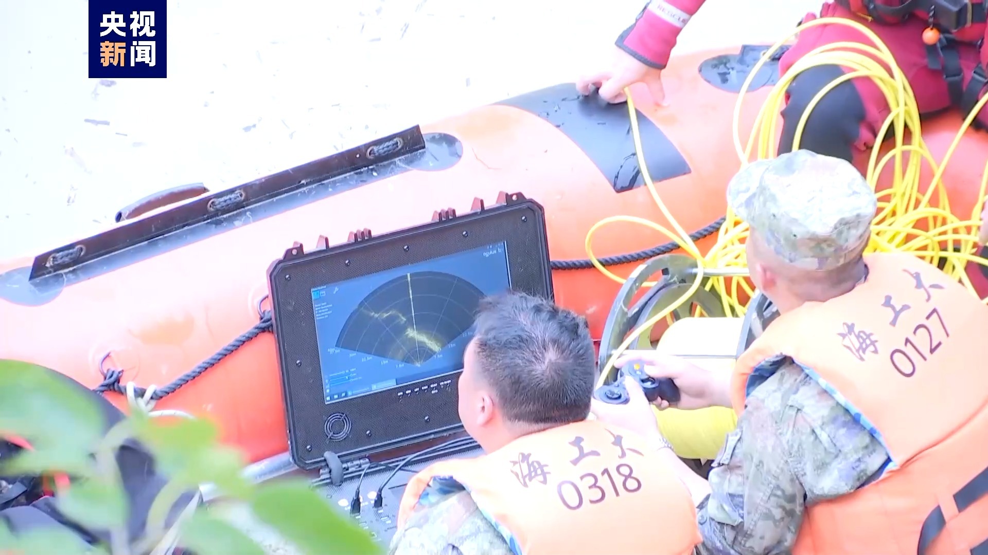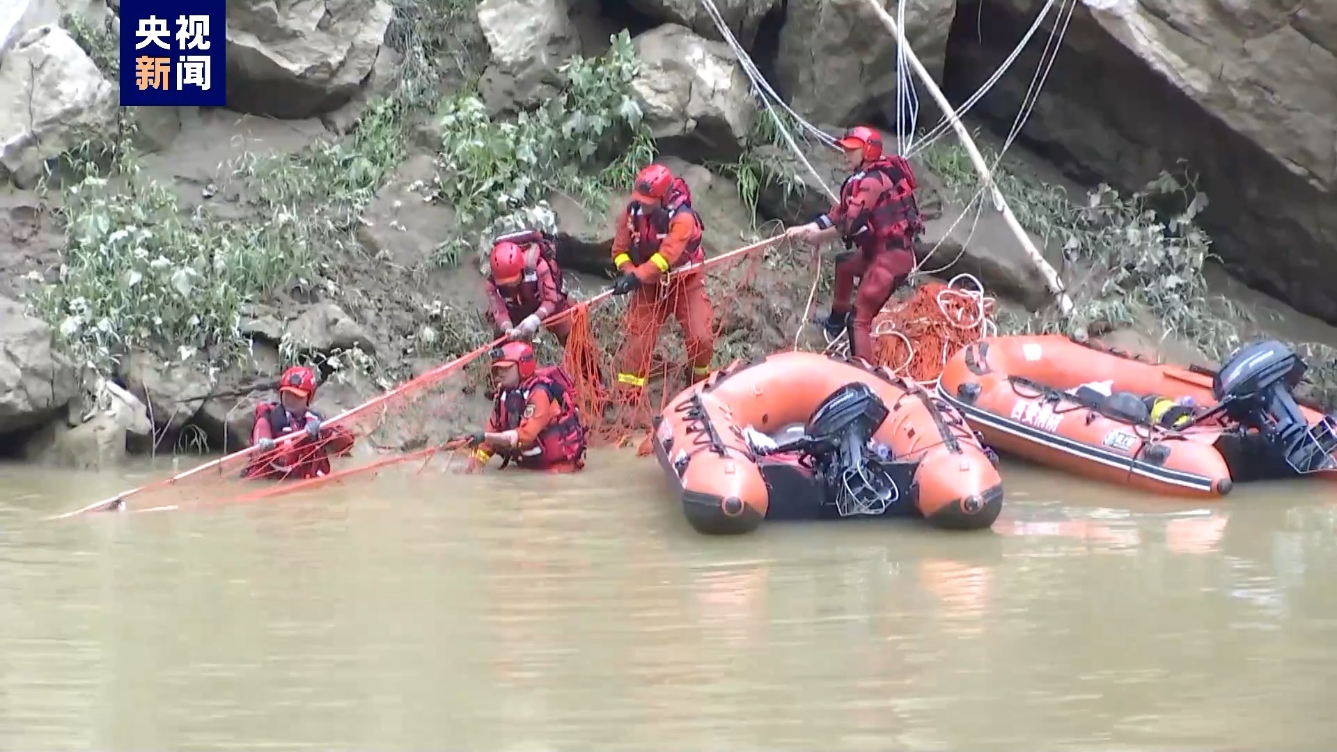 为了防止有更多的冲击物到更深的水域,救援队员紧迫在水面上拉起了一条拦网,这个拦网的意图是让上游的冲刷物尽量可以停留在这片区域,从而为咱们进一步的搜救创造条件。