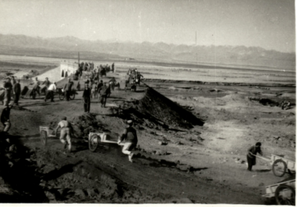 同年2月底3月初,实施工程人员分批进驻工地。兵团人凭借着一颗红心两只手,因陋就简,在雪地上修建住房、工棚,准备工具和机械等,迅速完成施工前的准备工作。