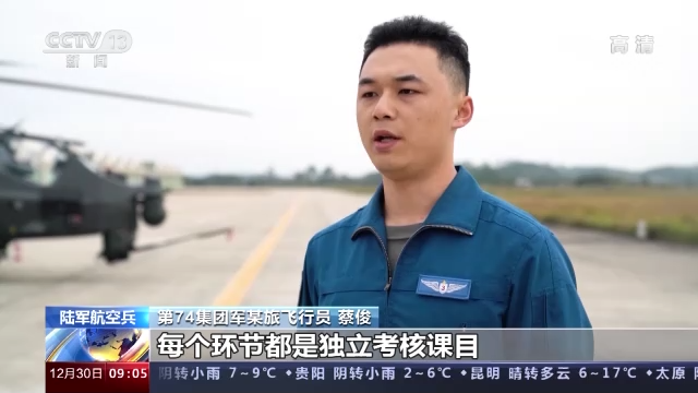 第74集团军某旅作训顾问 肖洒:咱们细化到每个指令、每个动作,从细节下手全方位评价整场查核。在复盘讲评阶段,引导飞行员去反思,查摆自己在演练中存在的缺乏,倒逼他们在练习中前进,在查核中生长。